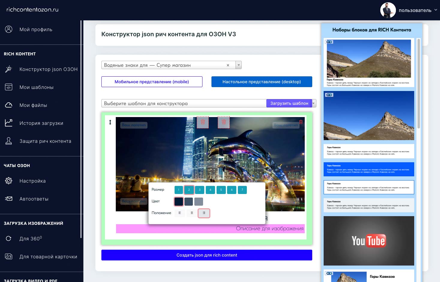 Удобный конструктор рич контента ОЗОН в формате JSON.