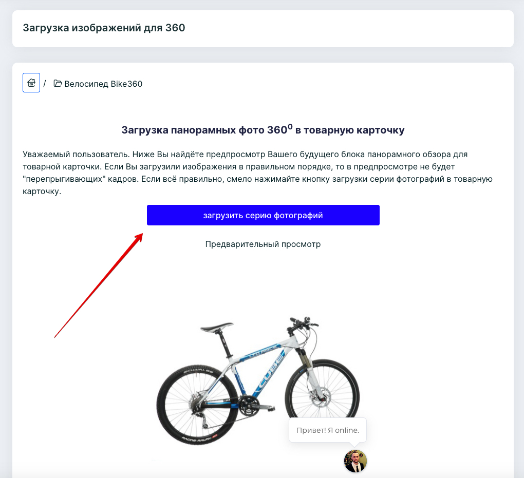 7) Перед Вами откроется страница на который Вы можете загрузить серию фотографий для товара "Велосипед Bike-360".