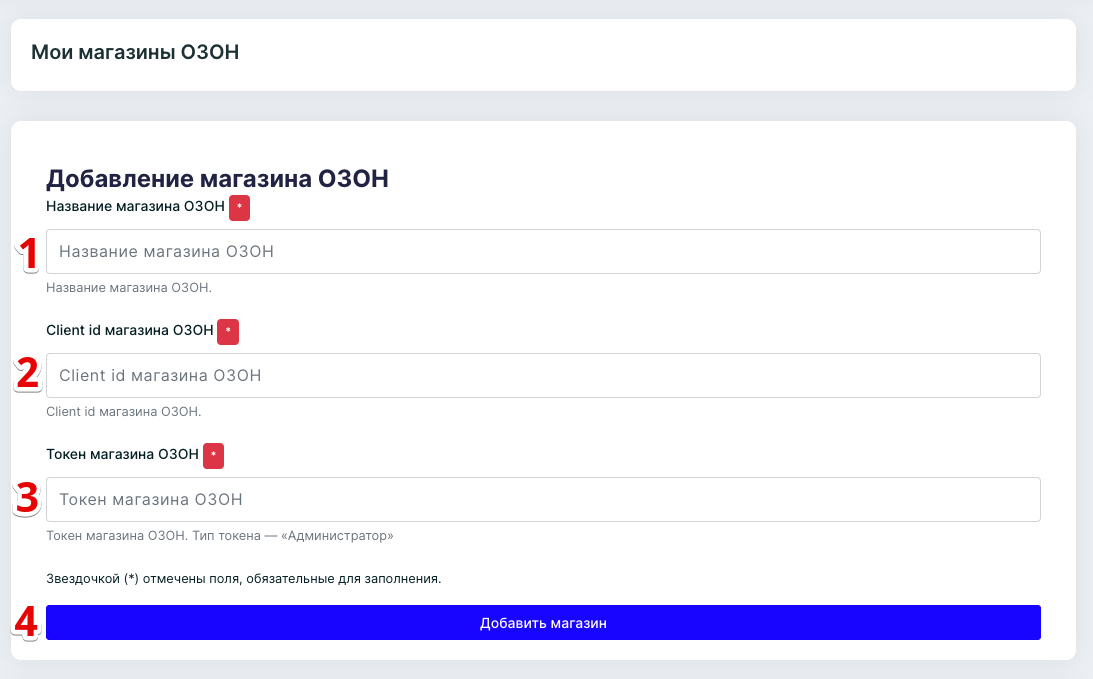 * — Токен добавленного магазина ОЗОН должен быть в активном статусе.