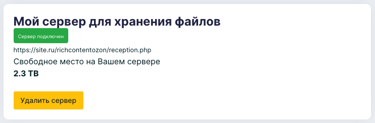 После добавления сервера в Вашем профиле Вы увидите похожий блок, как на скриншоте ниже
